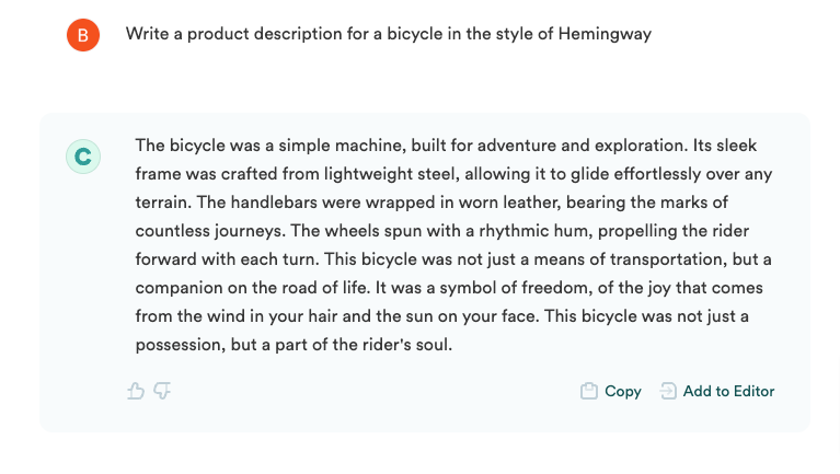 Copy.ai is a great way to help enhance your copywriting skills for content creation, whether that be caption writing, articles, or even blog posts. It boosts creativity and gives the user ideas. As with other AI, the more specific you are, the better the AI can learn and give you better responses.